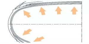 - Отличный контакт с сухой поверхностью. Эти же канавки между широкими ребрами улучшают курсовую устойчивость и управляемость.
