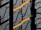 Многообразные изогнутые ламели, покрывающие значительную часть центральной и плечевых зон, образуют дополнительные кромки сцепления, которые помогают наладить контакт на влажных покрытиях. Элементы плечевых зон также рассеивают тепло, что снижает интенсивность износа.
