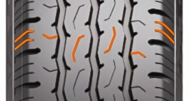 - Широкие сплошные ребра способствуют улучшенному сцеплению с влажной дорогой. Также они понижают сопротивление качению и, как следствие, уменьшается расход топлива.