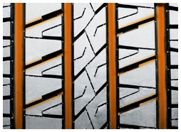 - Увеличенное количество поперечных ламелей гарантирует отменные тягово-сцепные свойства на мокрой поверхности, эффективный разгон и торможение.