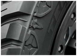 - Протекторные шашки занимают примерно столько же места, сколько и межблочные грязеотводные каналы. Благодаря этому удается исключить вероятность длительной пробуксовки колес при движении по непроходимым участкам. Покрышка просто не позволит автомобилю застрять в грязи.