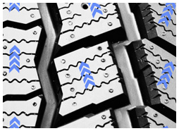 Агрессивные зигзагообразные ламели спроектированы для отличного направленного сцепления со снегом и льдом.